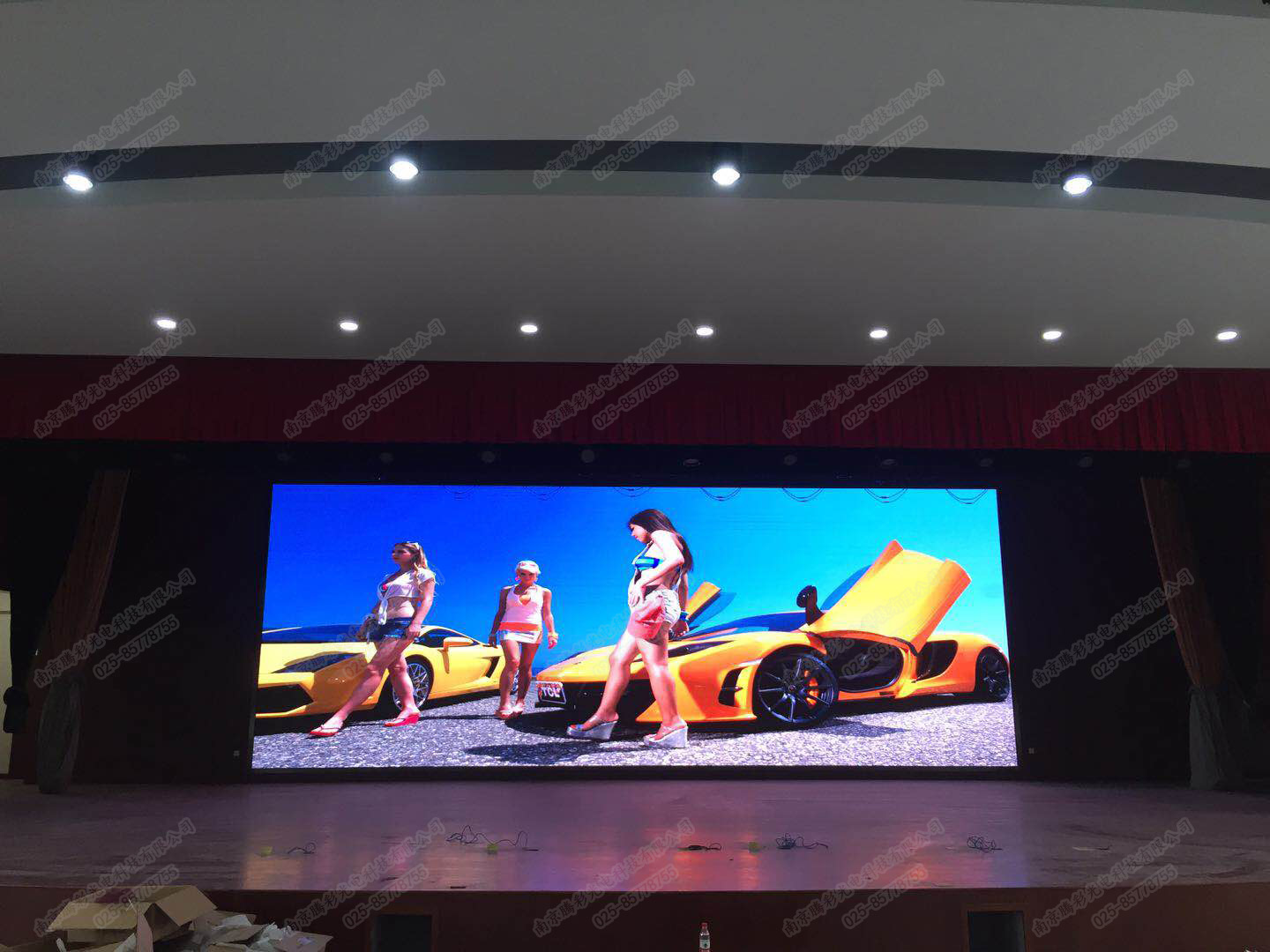 而当古老的校园碰上新兴的信息科技系统又会擦出什么样的火花呢?2017年10月26日,南京腾彩的工程队们早早的进入校园礼堂,经过五天起早贪黑的持续工作,一面达65m²的大屏在这里顺利完工,这面长达14米,高达5米的LED显示屏给这所朝气蓬勃的中学带来了浓墨重彩的一笔,给全校师生们带来更鲜活的舞台效果和更丰富的校园生活。