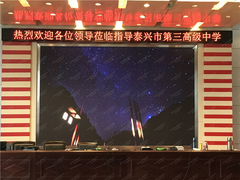 近期公司承接学校的工程鳞次栉比,室内室外的案例多彩纷呈。今天给大家介绍的是刚刚安装调试完成的泰兴市第三高级中学LED显示屏项目。