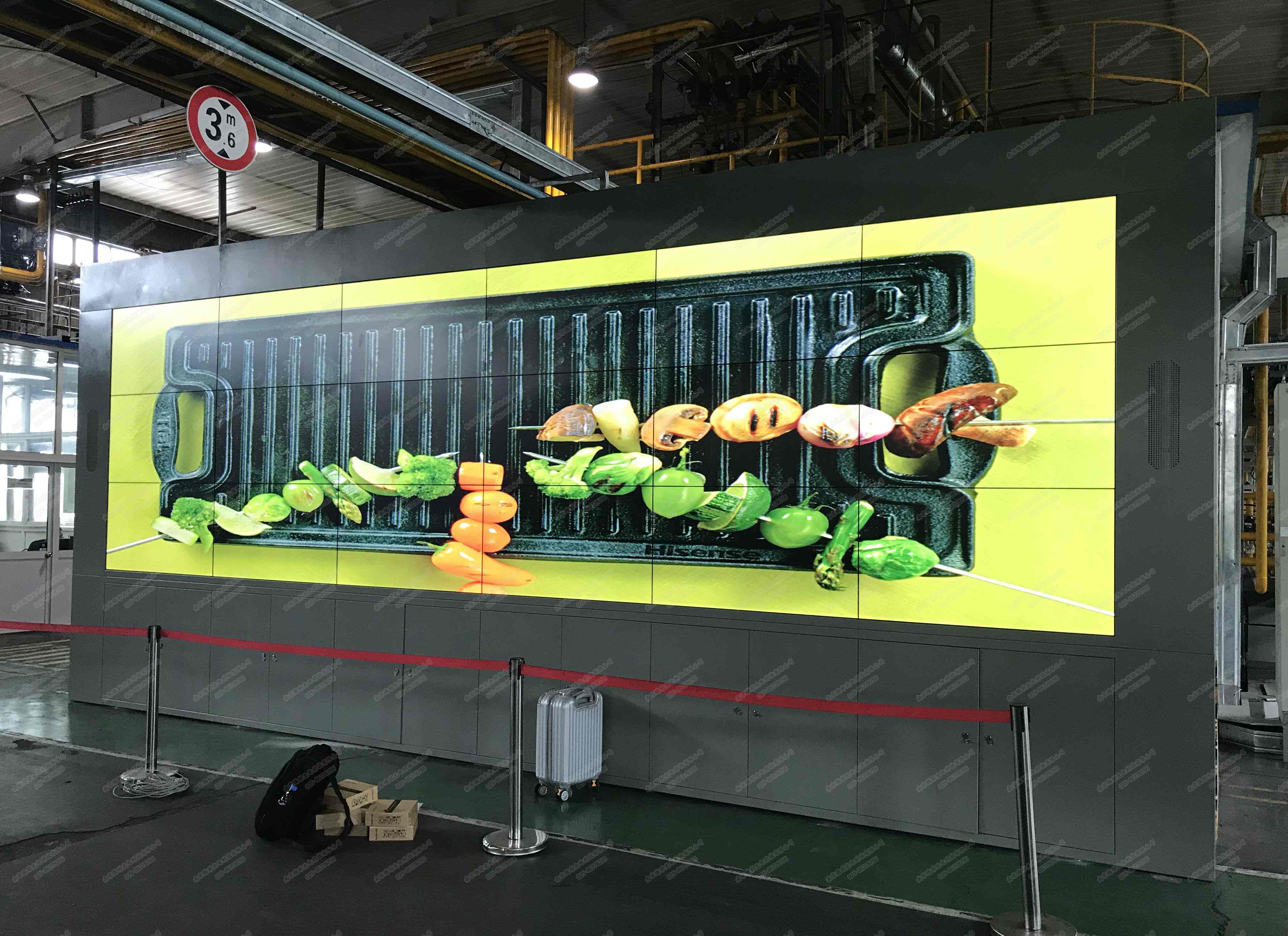 此次的项目共分为两个标段,第一个标段为液晶拼接,单屏尺寸55寸,双边拼缝3.5mm,拼接数量18块,拼接排列3*6, 宽6块,高3块,单屏分辨率1920*1080,亮度不低于500cd/m2,HDMI接口拼接,支持组群切换画面,多屏自动轮巡、单屏自动轮巡,同时支持视频开窗漫游、画面自由分割、拼接。安装后效果图如下: