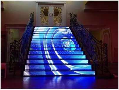 楼梯LED显示屏是LED地砖屏的一种,是主要应用在地板上面有一定的承重和防震功能的个性化LED显示屏产品。
